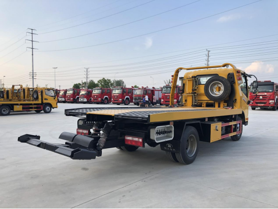 一體板:3噸上裝,4噸卷揚,21米鋼絲繩,3噸后拖臂,底板為花紋一體板(可選沖壓板),板長5.2米,雙側聯(lián)動操作,配四根捆綁帶,**小車一套,L型抱胎架一對,工具箱一個,LED工作照明燈一對,其余標配。