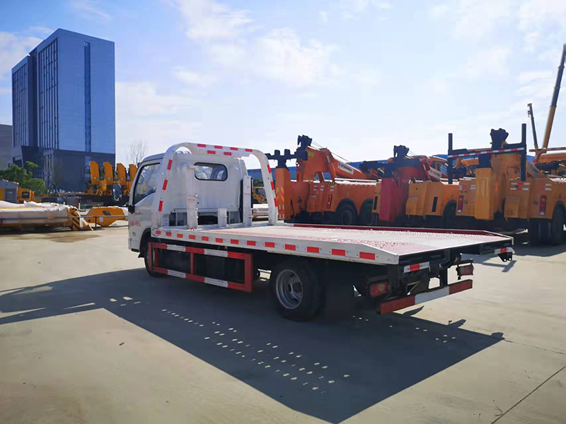 3噸上裝,4噸卷揚,21米鋼絲繩,3噸后拖臂,底板為花紋一體板(可選沖壓板),板長5.2米,雙側聯動操作,配四根捆綁帶,**小車一套,L型抱胎架一對,工具箱一個,LED工作照明燈一對,其余標配。