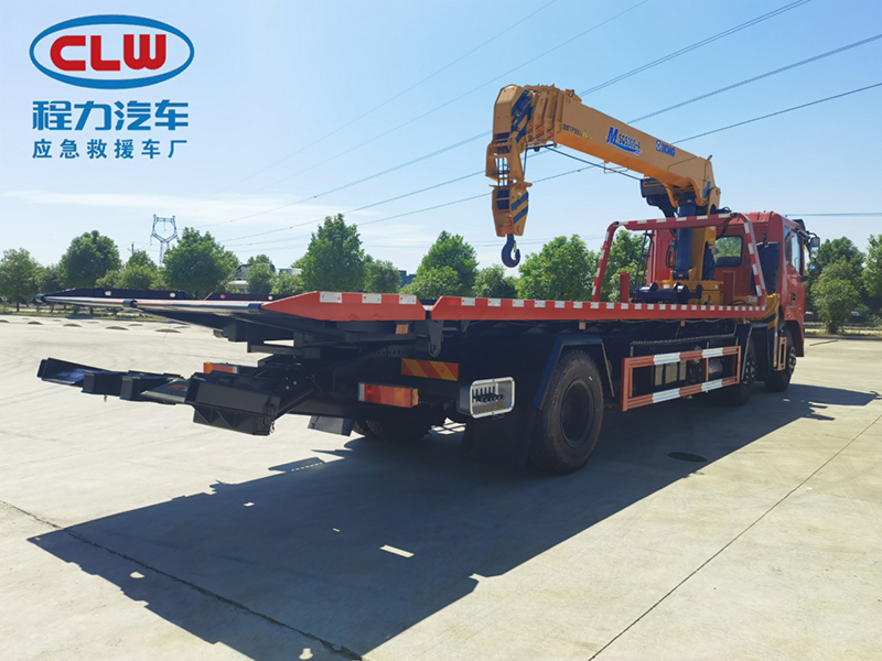 一拖二上裝配置:雙側聯動操作裝置,6個厚的花紋板,雙油缸,13噸平板,13噸3節后拖臂,10噸絞盤(35米鋼絲繩),4根綁帶,L型抱胎架一對,抱胎筒一對,小車1對,3對拖叉,1對鋼板吊耳拖叉,1對拖叉座。板長8.6米,寬2.55米。